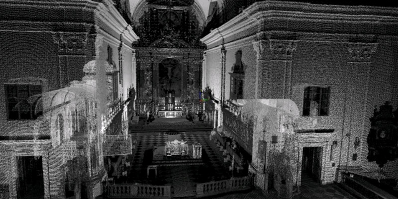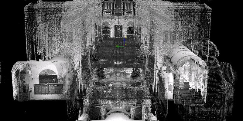 Output: 3D point cloud, cross sections of the nave and aisles, horizontal projections (upper church, lower church)
