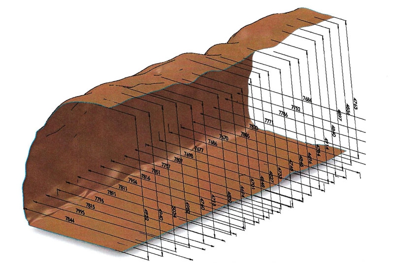 Output:  3D point cloud, cross sections every 5 m, orthoimages